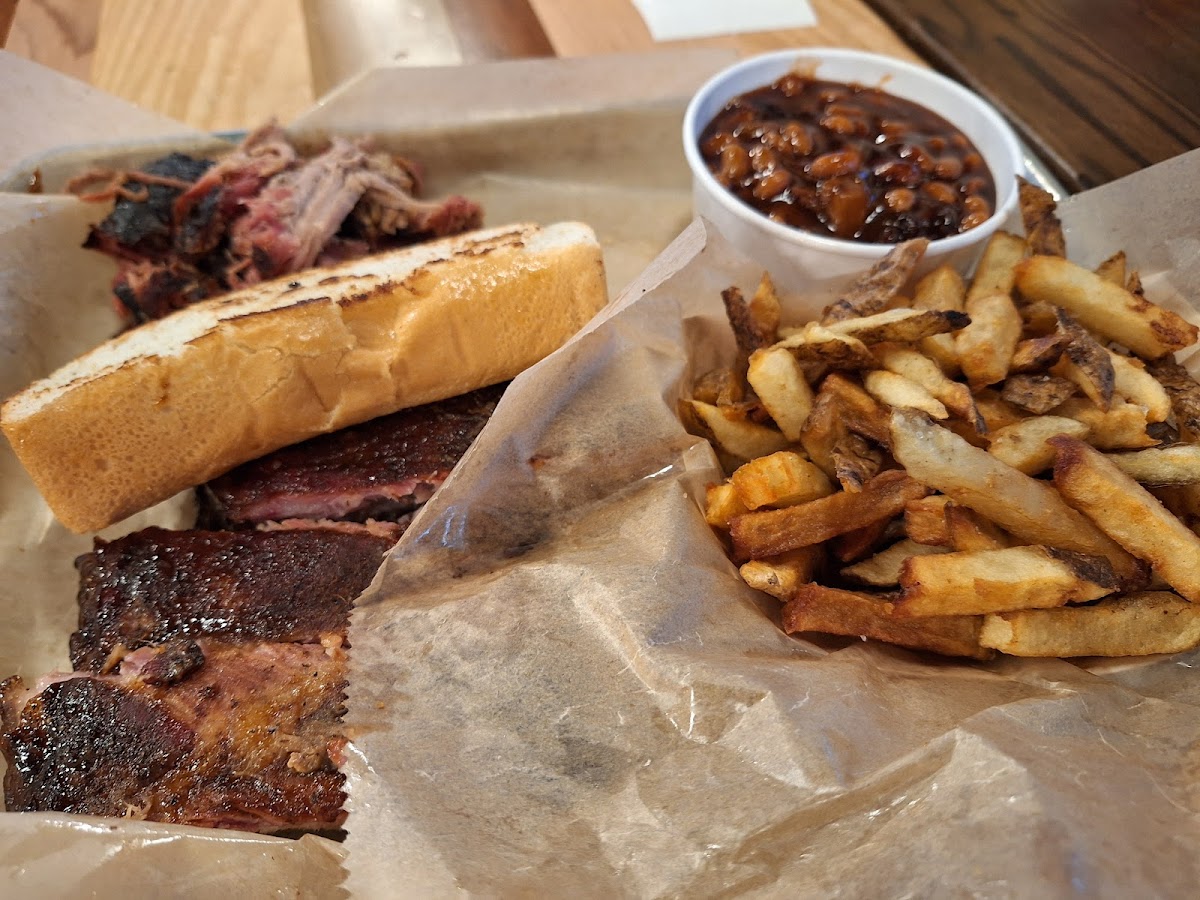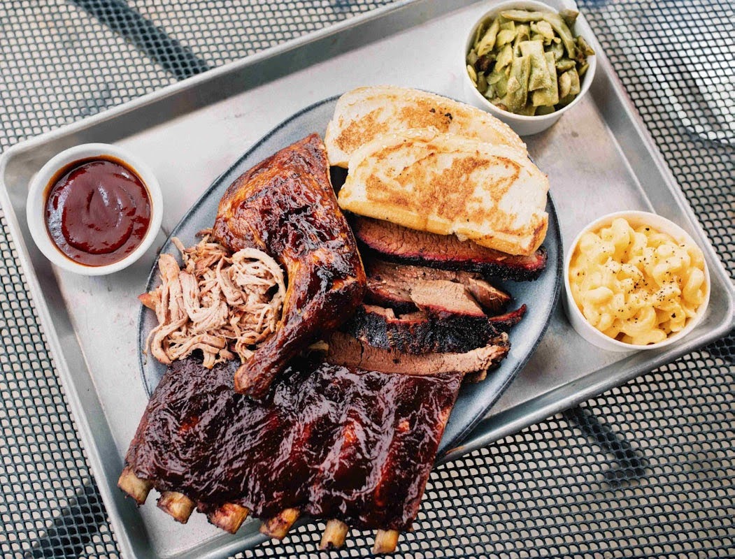 For those who can't get enough of the meat, the Meats by the Pound selection is a must-try. Picture the robust flavor of handpulled pork, succulent beef brisket, or tender smoked turkey breast, each available at $14.49 per half pound. And don’t miss their Triple Que, a delightful mixtape of pork, brisket, and rib meat slathered in a spicy-sweet sauce; it’s a flavor explosion that’s sure to please your palate.